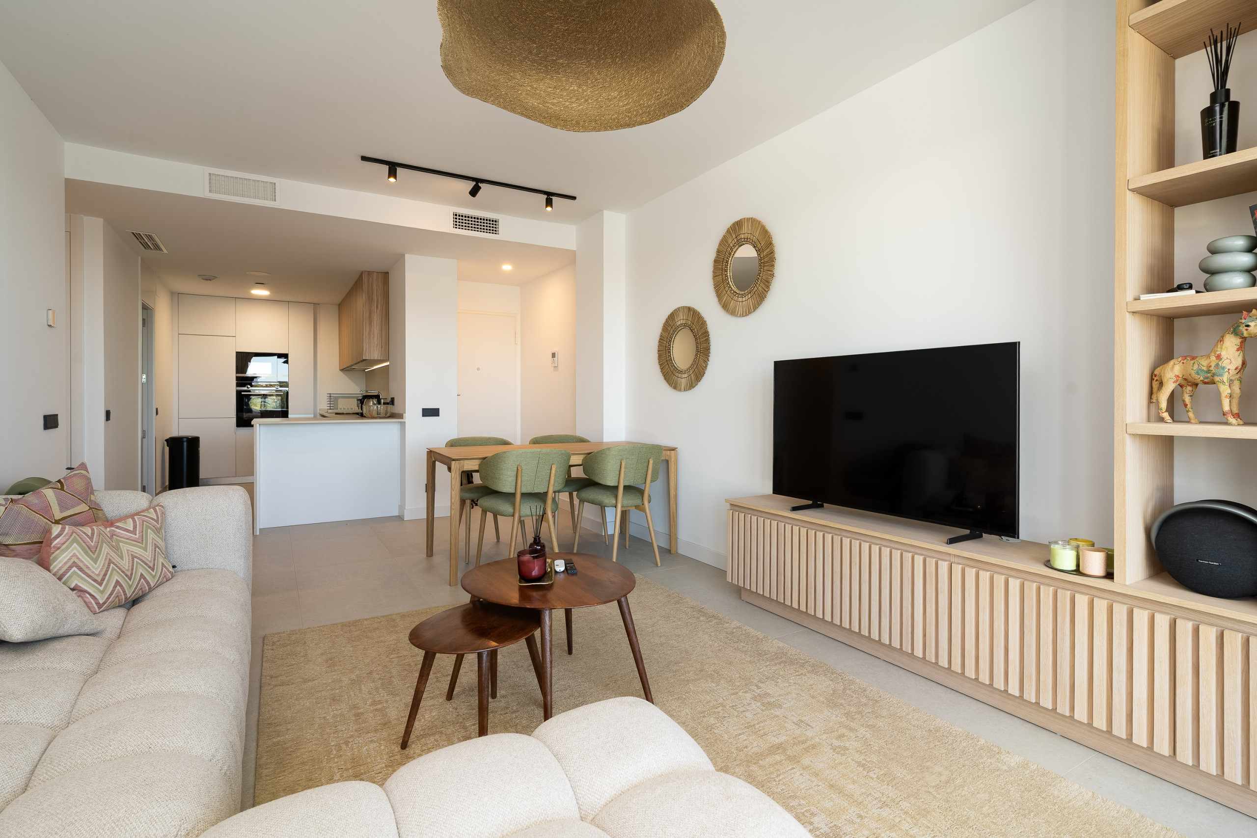 La cocina americana, de vitrocerámica, está equipada con nevera, horno, lavavajillas, utensilios/cocina, cafetera, tostadora, hervidor de agua.